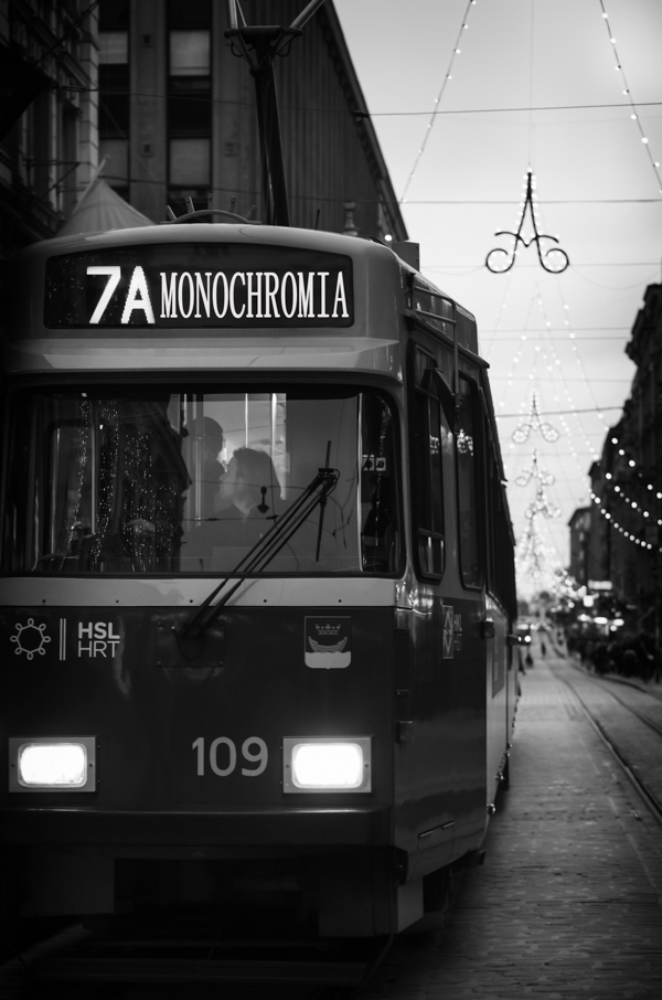 This is a perfect subject for Monochromania Elina 🙂 I love the angle you used on this shot showing the ornaments on the power lines and the driver. Perfectly done 🙂