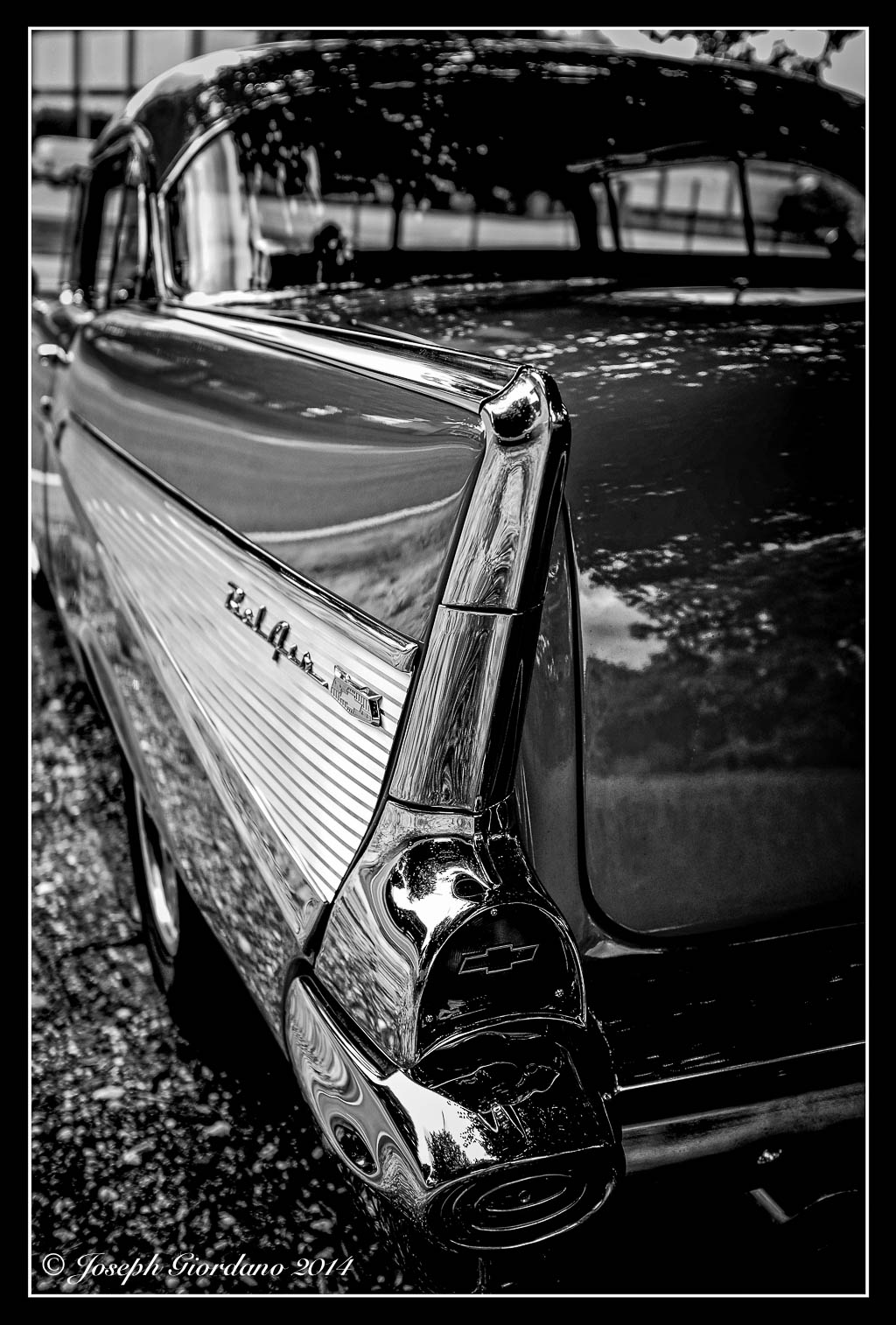 Oh, I know this one. A 1957 Chevy Bel Air. See? I learned something by hanging out with you. Nice and shiny.