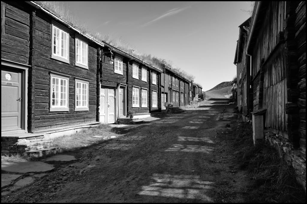 One of the oldest parts of this Norwegian mining town. In the distance you can see the slag heaps which are preserved to this day