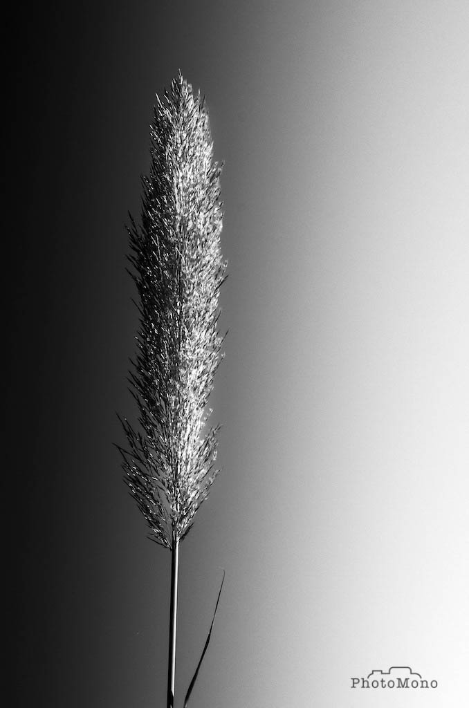One lone stalk of prairie grass, jutting up a little higher than all the stalks around it; just against a clear and cloudless sky. Nothing more.