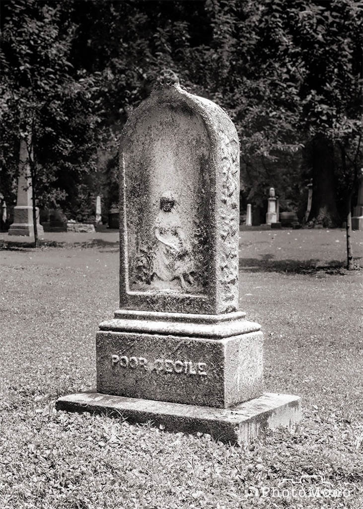 She was given a nice headstone complete with a bas-relief image that hints that Cecile was probably a young girl rather than a woman. But you are not going to learn anything else about Cecile from this stone. She has a headstone. But who was she? Did she have a last name? If she was a young girl, how old was she? When did she die? Who knows? She is but an enigma and has been for many years. Poor Cecile indeed.