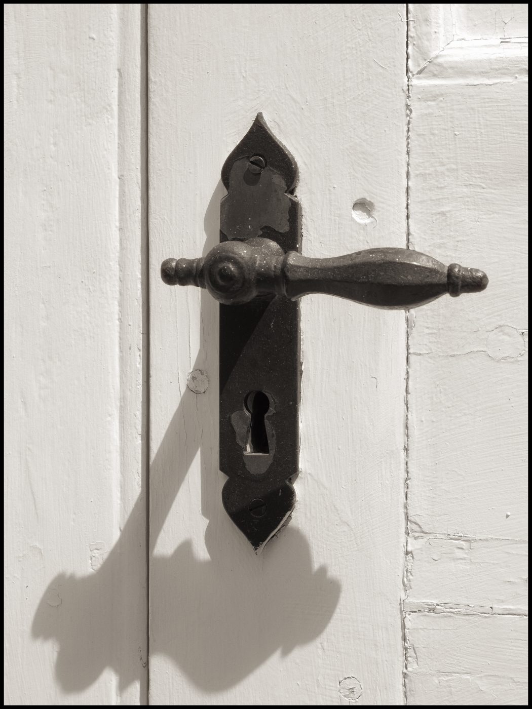 Near noon on a summer day, the bronze handle to the door of the church is warm, as though all the parishioners who have ever entered left evidence of their touch.