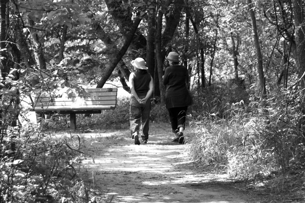 Two friends enjoying a lovely summer walk in the park.