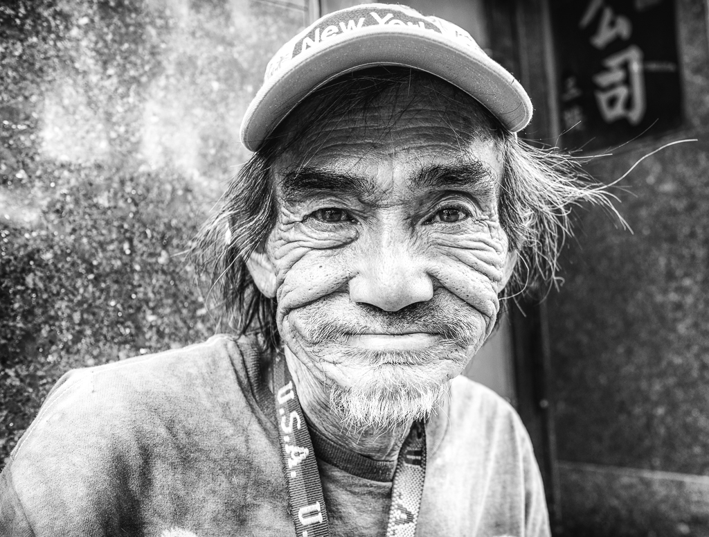 One of my favorite things about street photography is the street portrait. This is a man in Chinatown, NY. I approached this man to ask if I could take his picture, only to find out he didn’t speak English. I was attracted to the face that showed so much character. A smile and a non-verbal indication to the camera that I wanted to photograph him was all I needed. He smiled back and let me spend a few minutes photographing him. This is from that brief interaction on the streets of New York.