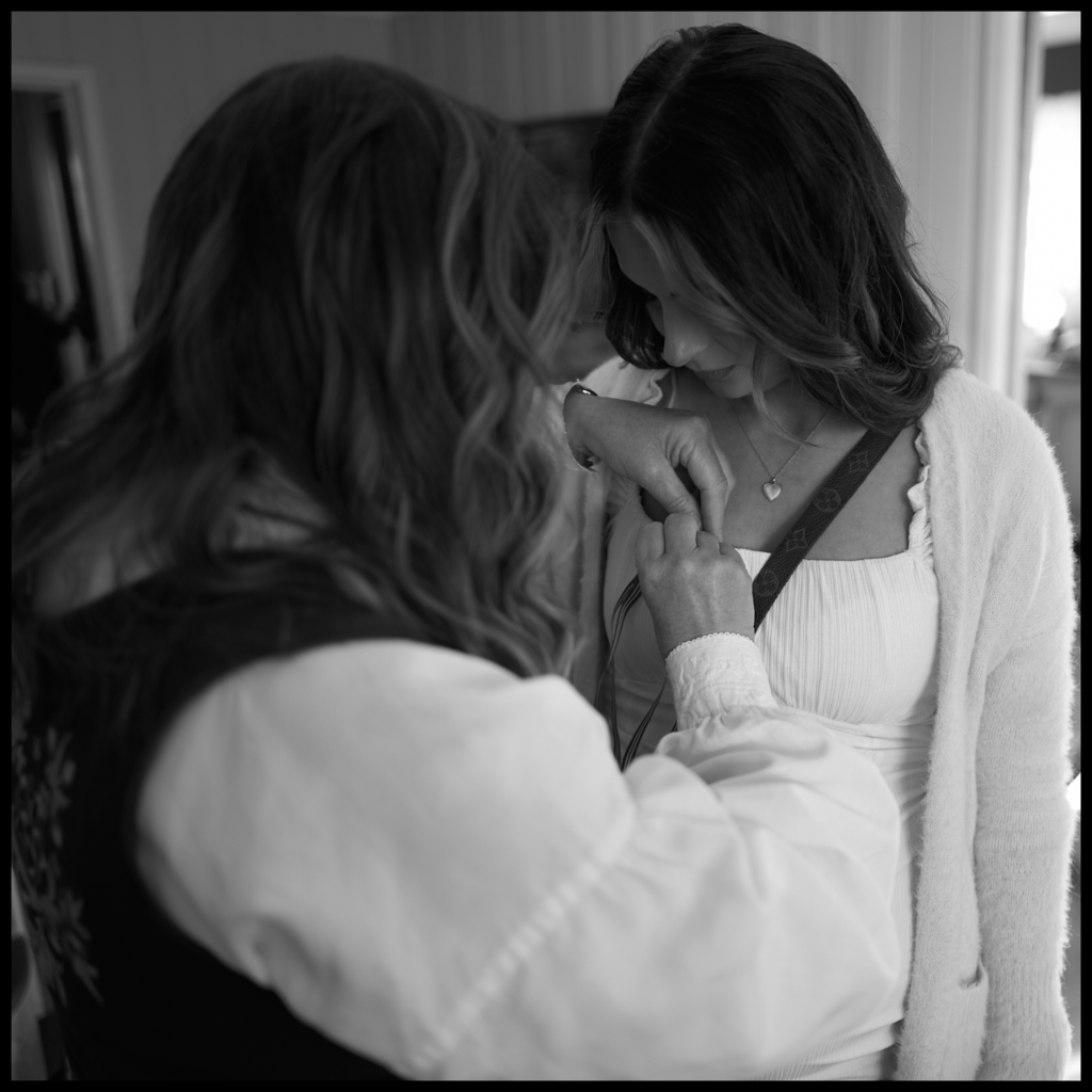 My wife helps our daughter pin a ribbon to her dress for the 17th May celebrations here in Norway