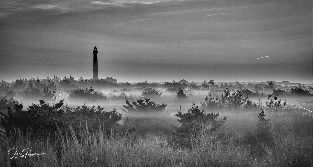 Fire Island lighthouse shortly after sunrise before the ocean fog burned off.