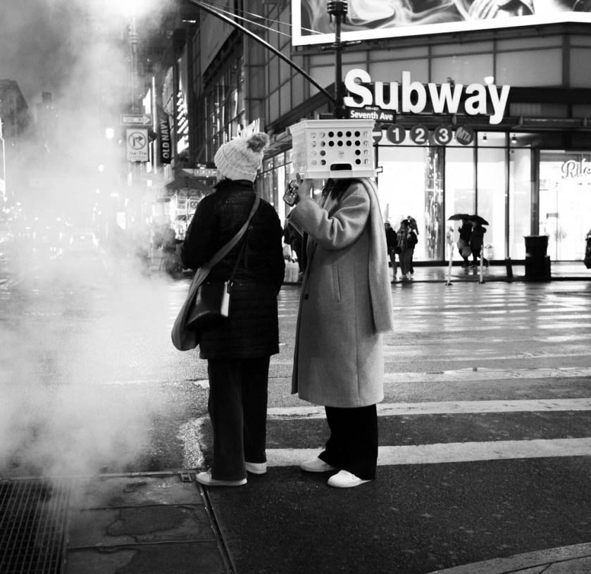 I was going back to catch a train home after a fun day in the City when it started raining unexpectedly. I spotted these two trying to get a cab. I Love New York