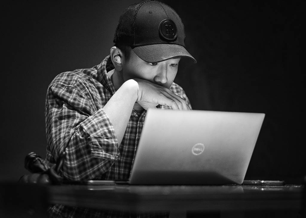 As a street photographer, after hours of walking around, one of my favorite things was to tuck into a cafe for food or drink and get off my feet. I realized quickly this was another great place to people watch and capture every day life with my camera. The wonderful light from the lap top attracted me to this image and the intensity with which he was concentrating,