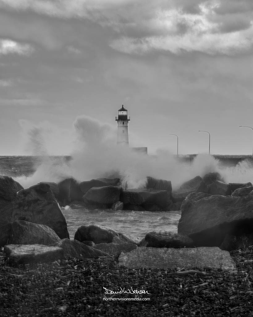 Rainy December day on the boardwalk in Duluth, MN.