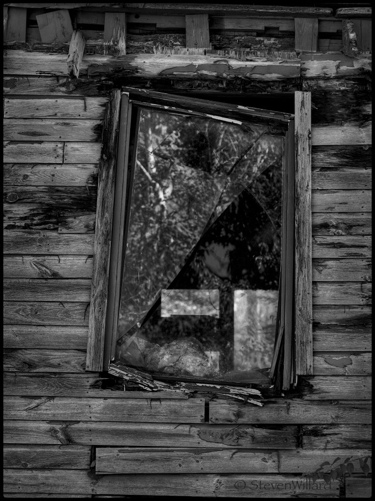 The outbuilding was some way off the road. What caught my eye was the reflection of the sun off the broken glass. As photographers we are constantly searching for interesting elements; lines, textures, contrasts, and tones, and hopefully meaning*, which offerers the biggest challenge. Does the image serve as a metaphor for something deeper?