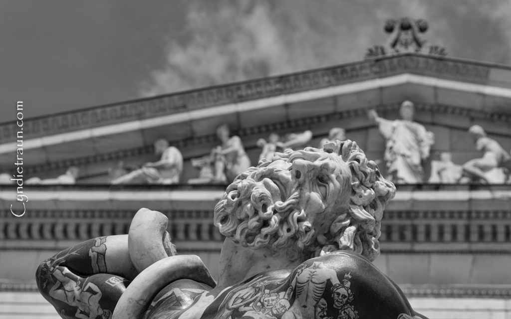 As a punishment, Athena sent two giant sea serpents to strangle and kill Laocoön and his two sons; the agony can be seen in his eyes. We were lucky enough to see the work of the Fabio Viale as it was installed, for the very first time, at the Glyptothek Museum in Munich this past year. There was beauty in every inch of this sculpture.