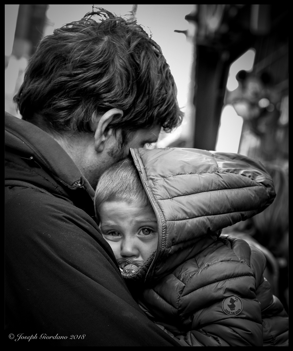 Junior gives the camera a look while dad takes a breather in Times Square, New York City 🙂