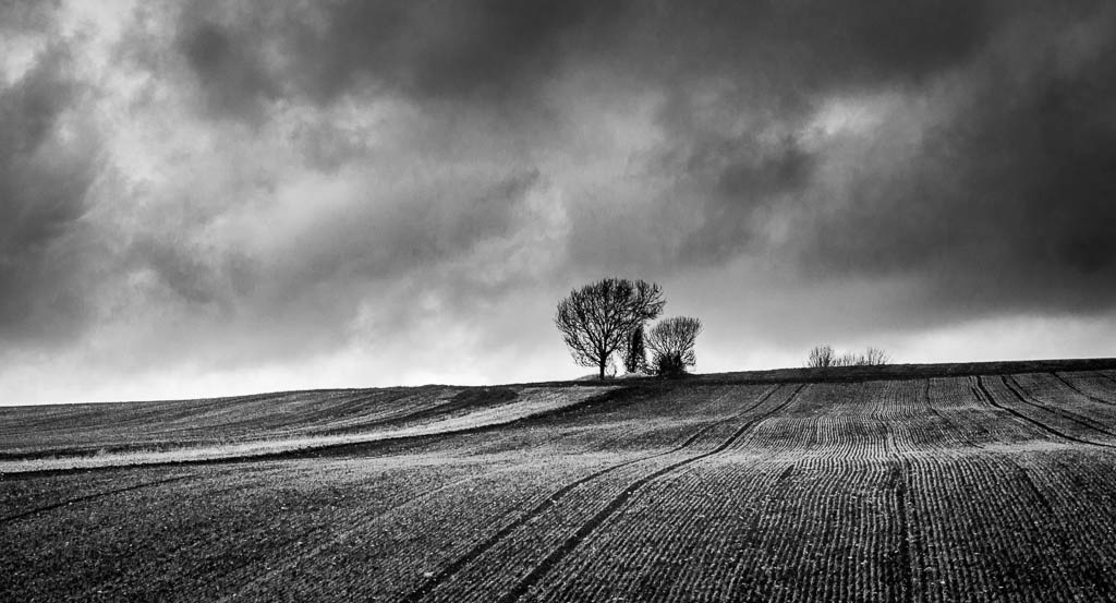 Dark, moody clouds blow past this solitary tree at Lindley meadows in North Yorkshire.