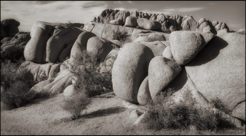 These bare branches hanging down from a clump of pine needles reminded me of roots working their way deeper and deeper into the earth; the textured wall in the background serving the visual equivalent of earth. While this image was photographed as presented, it works almost as well when inverted. Try looking at it that way.