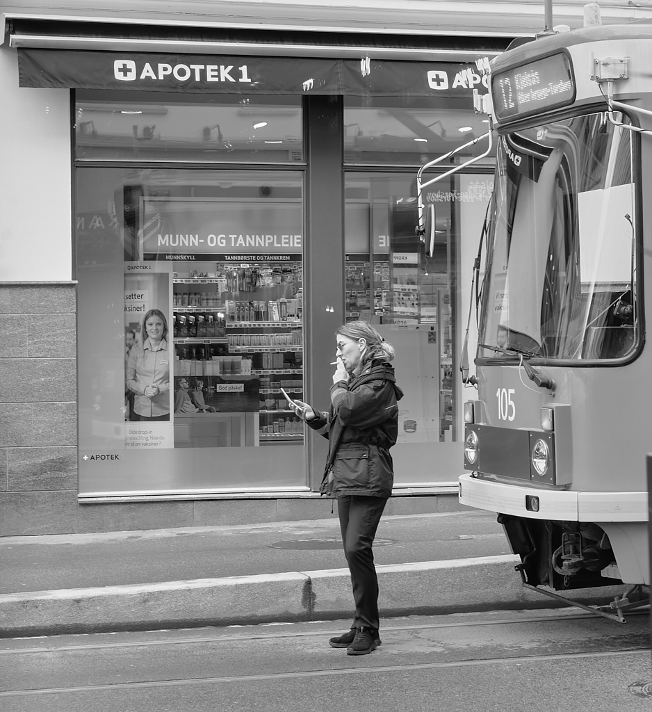 Not as dramatic as it first looks. This lady isn’t going to get run over by a tram. She is in fact the tram driver having a break.