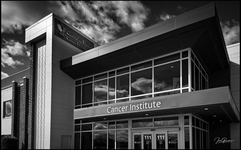 I must have passed by this building a dozen times and never noticed it. On this morning the sun was shining bright and I noticed the cloud reflections in the windows. It was then when noticed the new building.