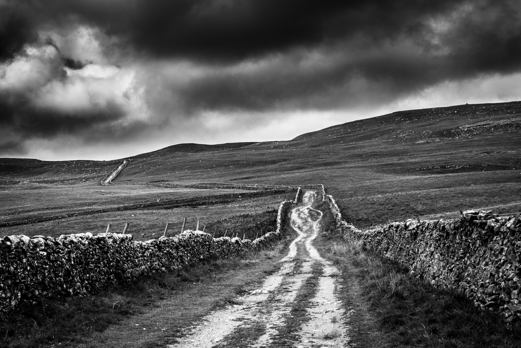 The shot is of Mastiles Lane in the Yorkshire Dales National Park. Mastiles Lane is an old drovers road, used by the monks at Fountains Abbey to take their sheep for shearing and to market at Brimham, many miles away. There are remains of a Roman Marching camp along the way which is 2000 years old.
